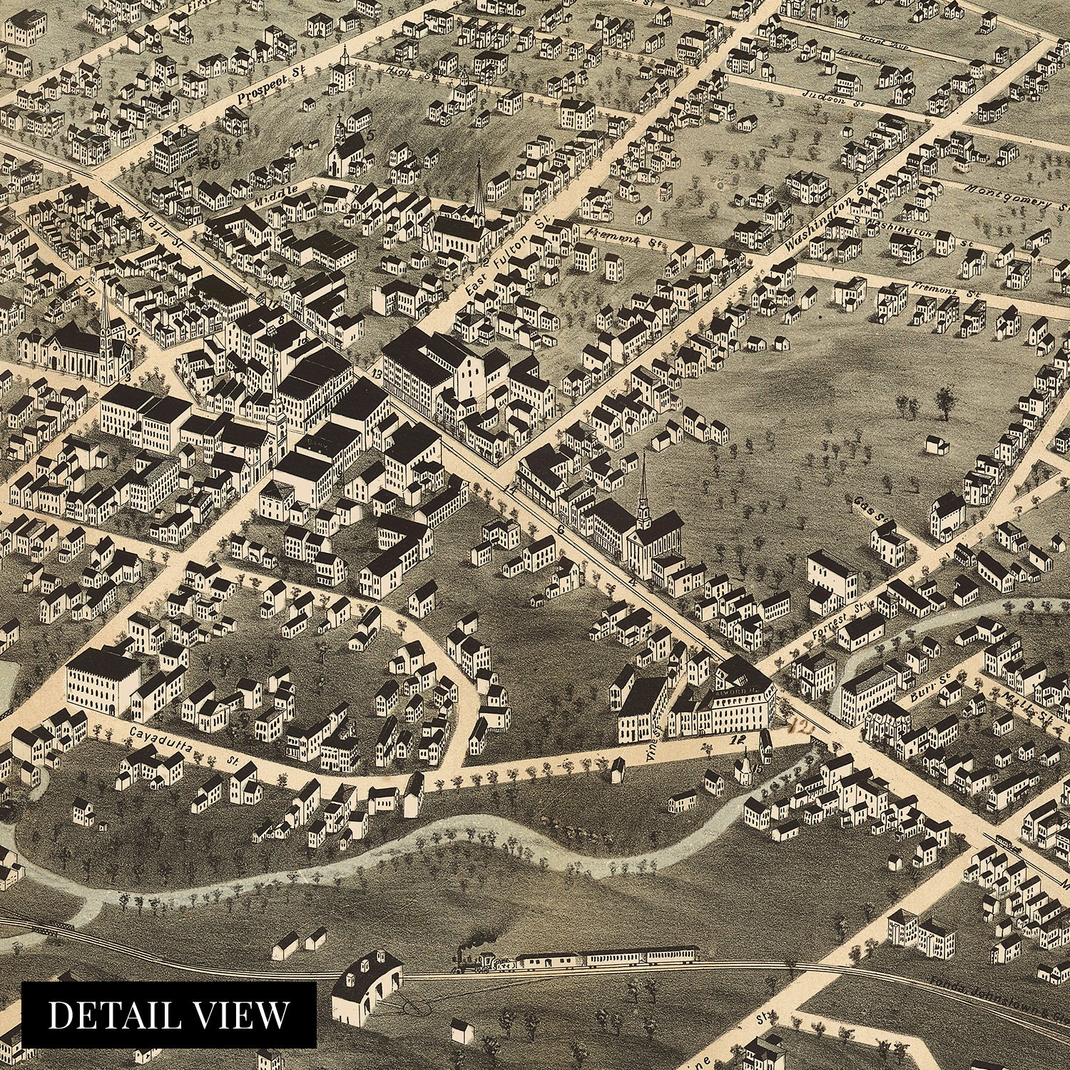 1875 Gloversville New York Bird’s Eye View Map Wall Art Print